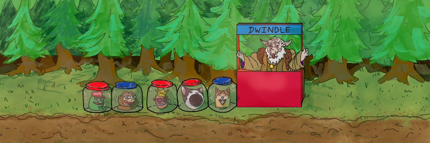 Rumors swirl around Dwindle—some think he’s an insider with deep connections in the crypto world, always knowing when a coin’s about to flop. Others whisper that he’s the one pulling the strings, causing the crashes himself just to sell the heads afterward. Either way, Dwindle’s always there with a grin and a “who, me?” look.